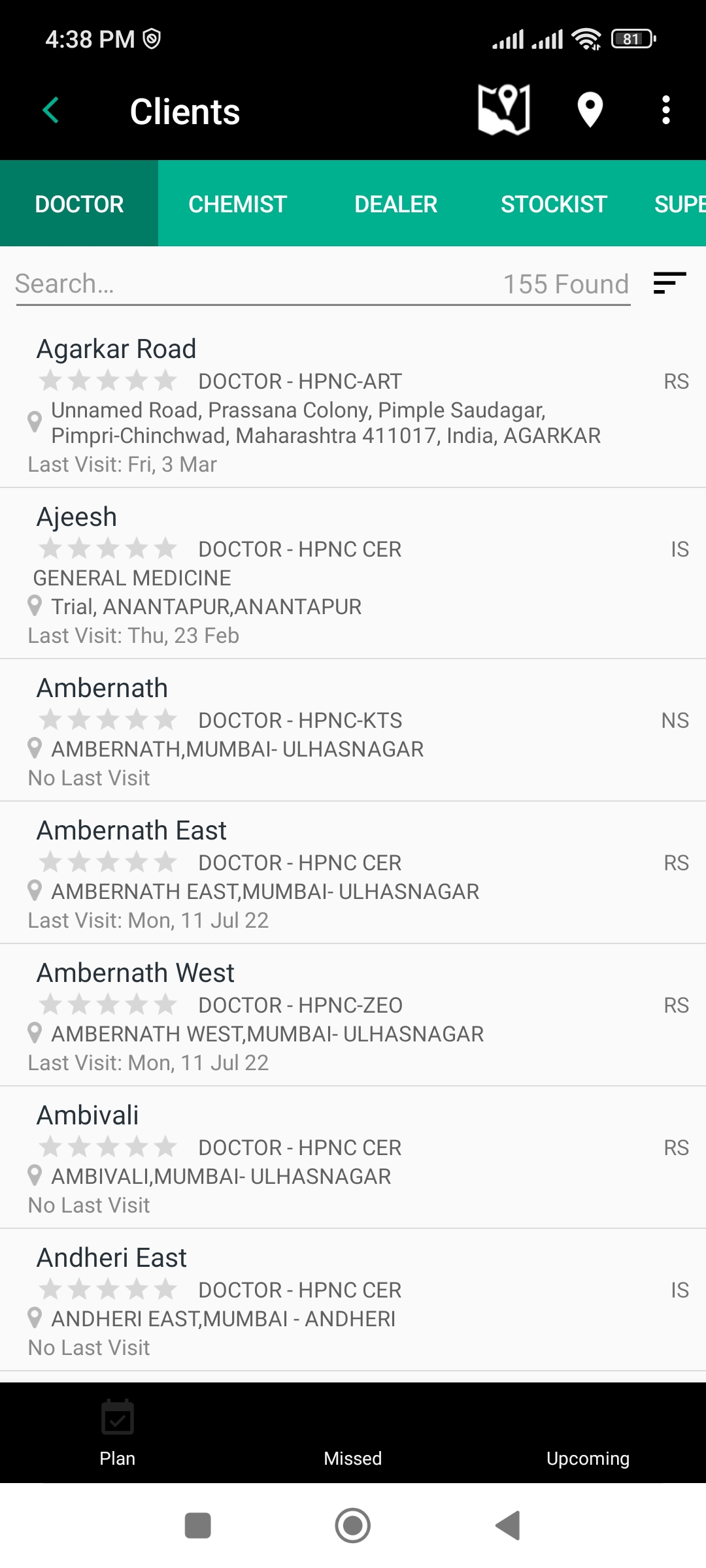 Login to the PRx app, Click on Client - Select the Doctor from the List