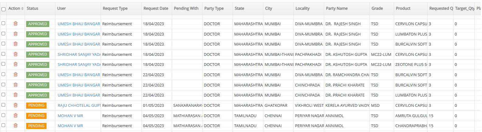 You will find a list of requests submitted by your team members. You can filter request type - Reimbursement to view all reimbursement requests submitted. Click on Status column of the relevant request.