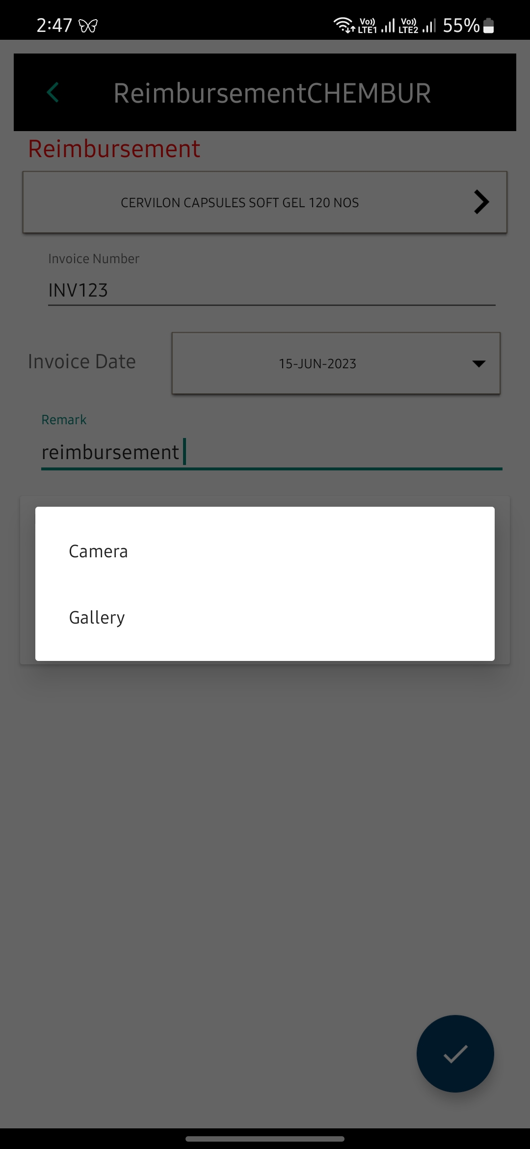 Enter the Invoice Number and Invoice Date and attach the invoice by clicking the "Images" Section. You can either select "Gallery" or "Camera" and upload the invoice.