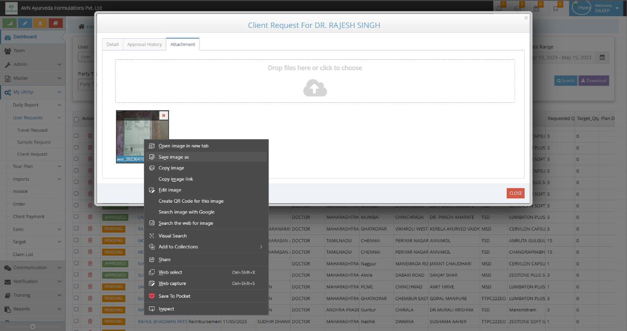 Note, to view the invoice submitted as attachment, you can go to the attachment tab by clicking on the User column and either click "open in new tab" or "save image as" and save it on your computer to view it.